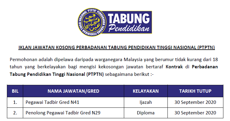 Jawatan Kosong Ptptn Perbadanan Tabung Pendidikan Tinggi Nasional 21 Mei 2017 Jawatan Kosong Kerajaan Swasta Terkini Malaysia 2020 2021