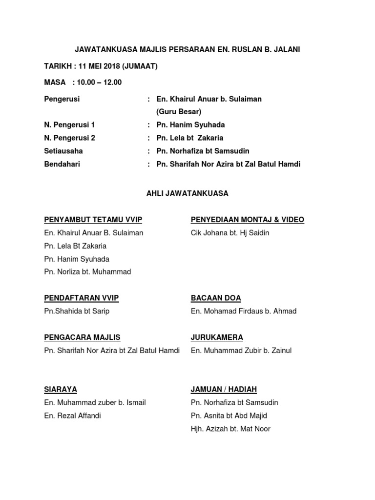 Jawatankuasa Majlis Persaraan Tahun 2018 Pages 1 6 Text Version Anyflip