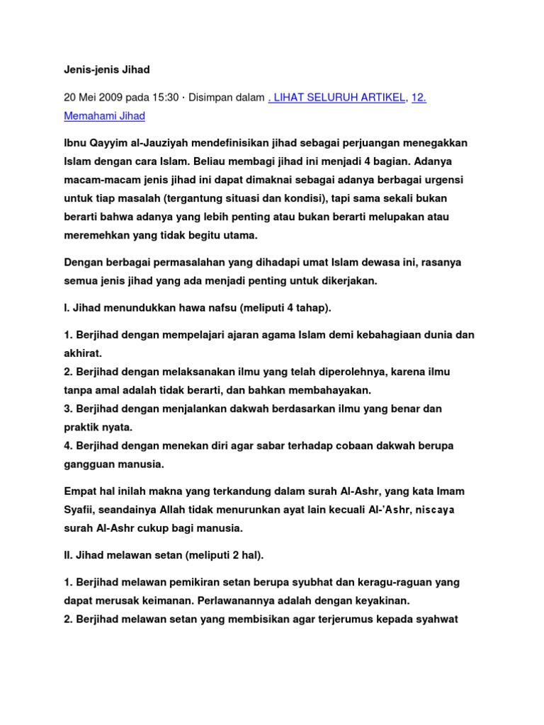 Sambungan Jenis Jihad Docx Jihad Akal Fikiran 1 S U2019bangan Buah Fikiran Idea T U2019golong Dlm Jenis U00b2 Jihad Di Jln Allah Swt 2 Cth Salman Al Farizi Course Hero