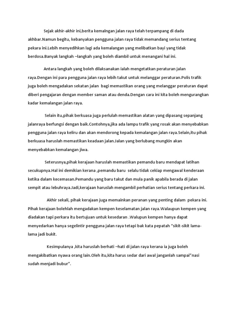 Karangan Peperiksaan Akhir Tahun Kemalangan Jalan Raya Kelvin