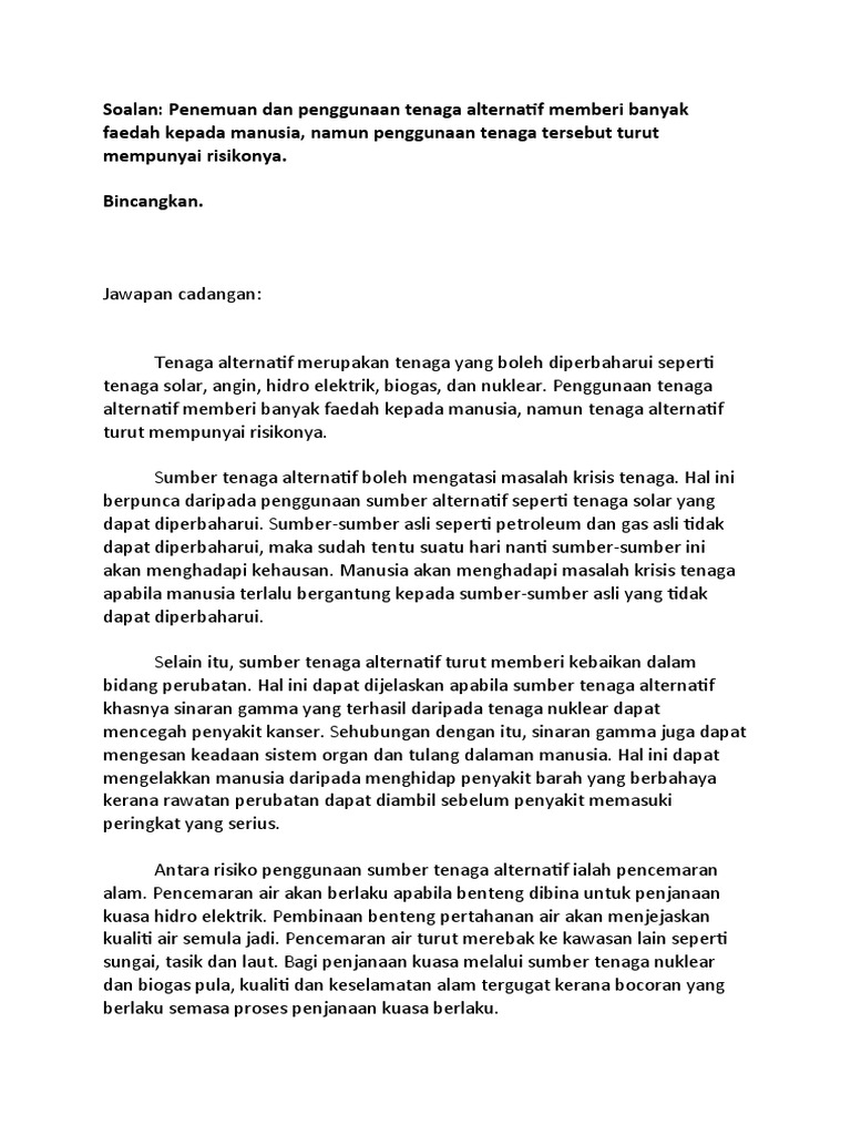 Contoh Jawapan Karangan