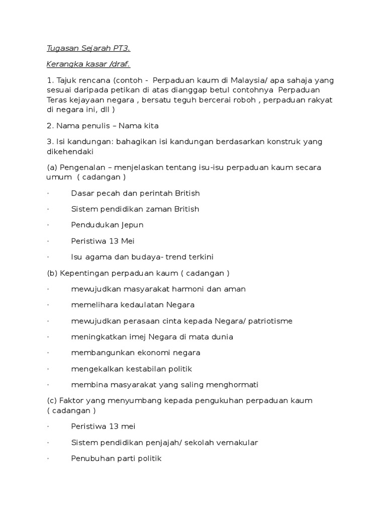 Kerangka Kasar Sejarah Pt3 2020 Contoh Proses Awal