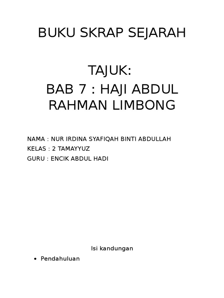 Sejarah Tingkatan 3 Haji Abdul Rahman Limbong