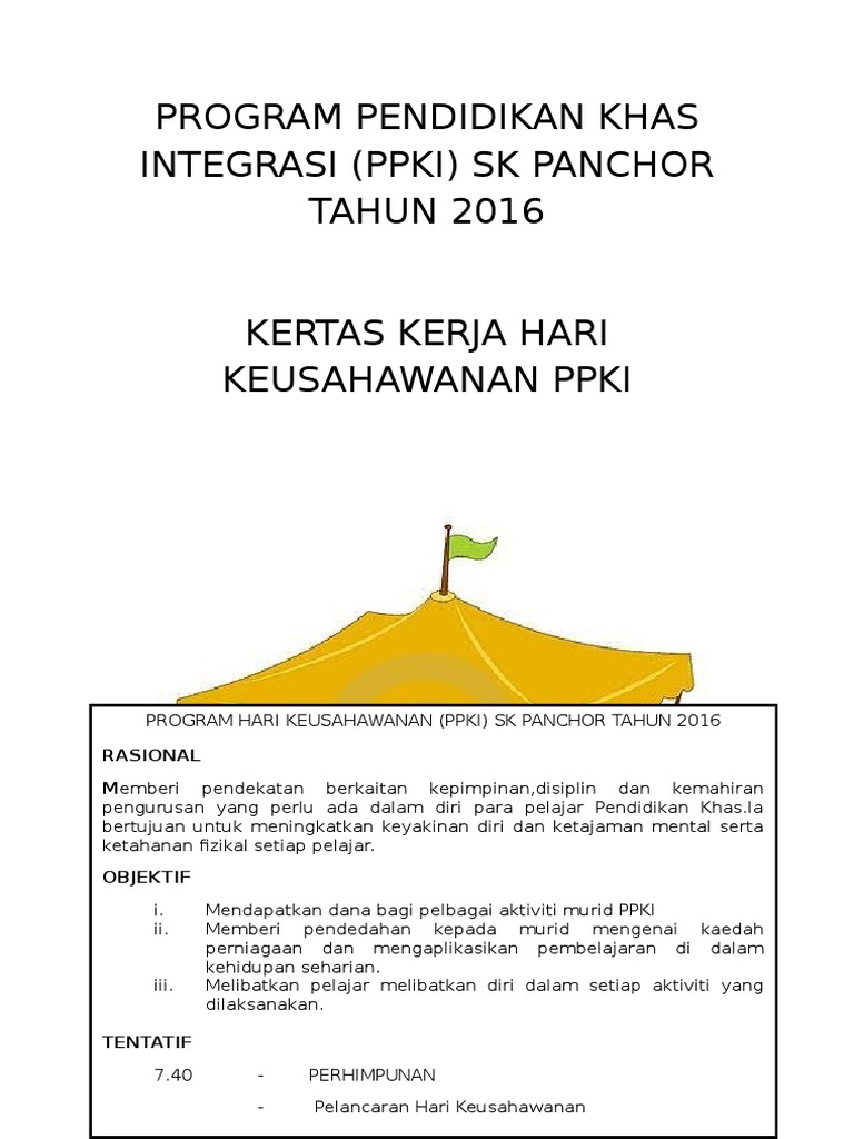 Kertas Kerja Minggu Keusahawanan Program Pendidikan Khas Integrasi Ppki Sk Bukit Balai Lenggong