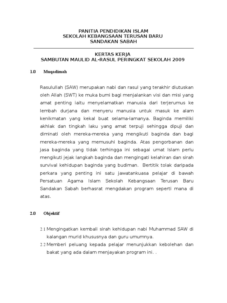 Kertas Kerja Mohon Kelulusan Sambutan Maulid Al Rasul